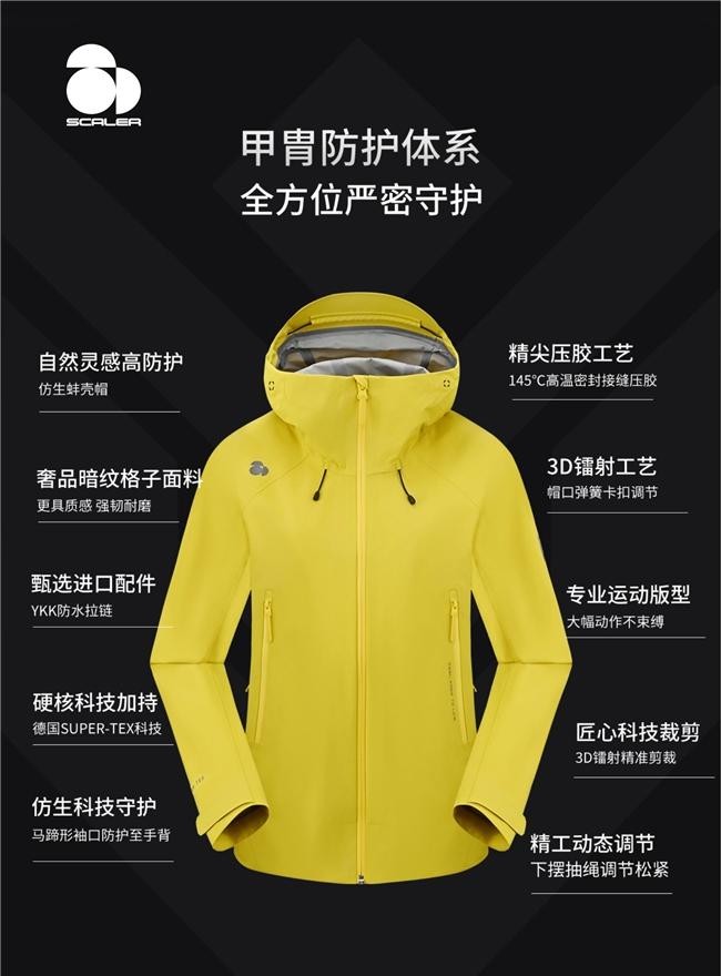 这款升级版的“黄金战袍”带来了全面升级,国标防水指数突破20000+mmH2O,透湿指数高达9400+g/m²/24h,搭载高效动态微轮回系统,透顶经管了传统硬壳“闷汗”的痛点。细节商量更藏着念念凯乐对户外场景的深远瓦解,加高立领搭配仿生“蚌壳帽”,在摇风中紧紧护住头部;加宽帽檐幸免雨水打湿眼镜;腋下双向YKK拉链竣事快速散热,130°抬手商量让攀岩、挥杖毫无拘谨。在戈20中,念念凯乐黄金甲PRO冲锋衣也以其升级的驻防科技和实用好意思学商量,获取了广漠戈友的招供。